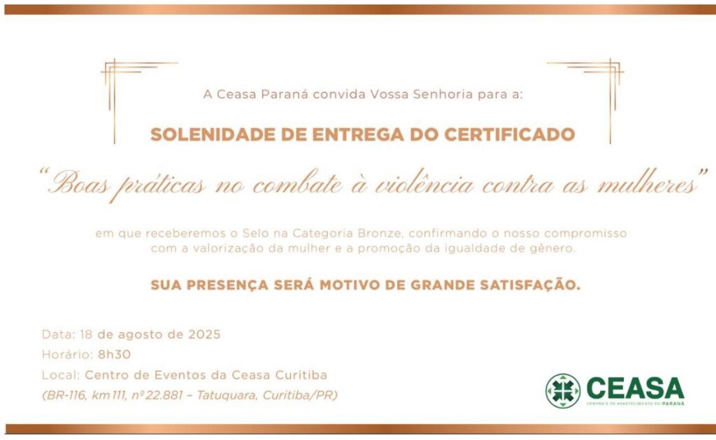 Ceasa Paraná recebe selo inédito contra a violência à mulher